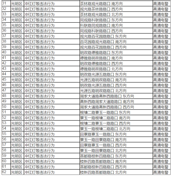 此次194套“電子警察”分布共涉及三個(gè)區(qū),分別是寶安區(qū)、光明區(qū)、龍崗區(qū)