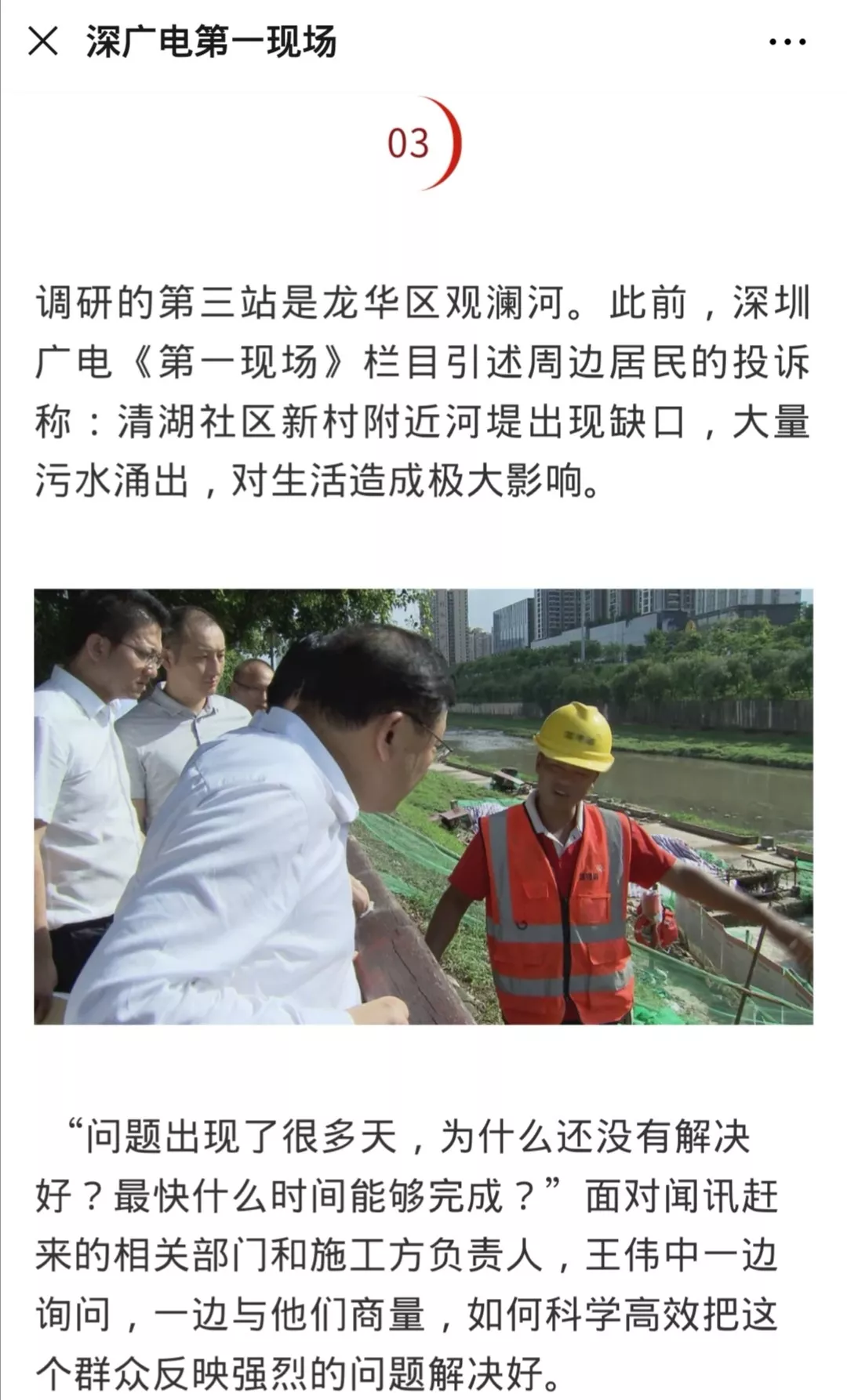 龍華區(qū)水務(wù)局工作人員排查原因后表示之所以這個(gè)地方會(huì)涌出污水,和記者之前去采訪的觀瀾河梅龍大道旁的污水干管塌陷有關(guān),而這一塌陷位置也是本月初省委副書記、市委書記王偉中暗訪調(diào)研的其中一站↓↓