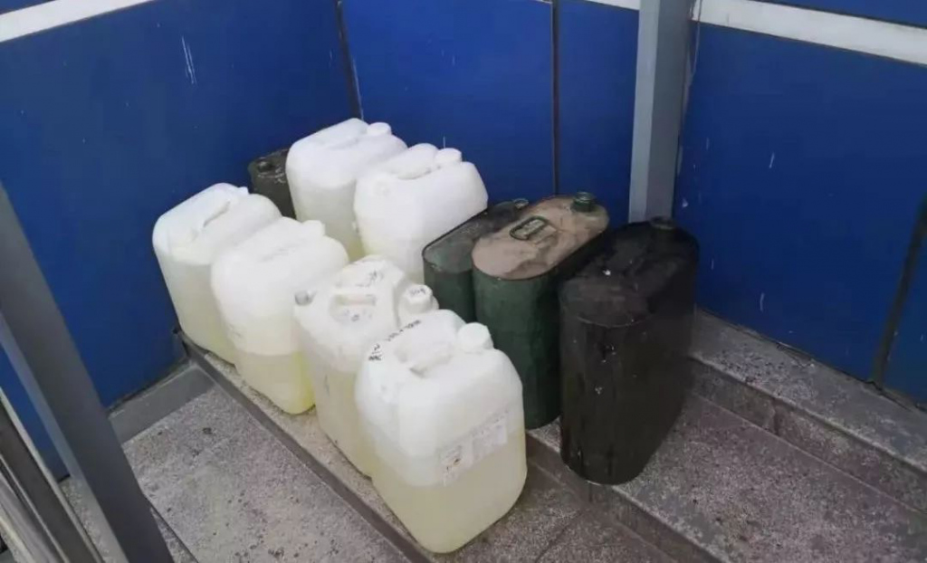 7月26日上午,深圳市交通運(yùn)輸行政執(zhí)法支隊(duì)(以下簡(jiǎn)稱"執(zhí)法支隊(duì)")光明大隊(duì)和新湖派出所民警開展聯(lián)合執(zhí)法行動(dòng),一輛車牌號(hào)為粵 NR***的小轎車引起了執(zhí)法人員的注意,這車的后排座位好像"坐"著啥東西。于是執(zhí)法人員示意該車靠邊停車接受檢查,走近后看真切了竟是一桶桶汽油,不僅后排座位有,后備箱也有,前前后后總共放了10桶。