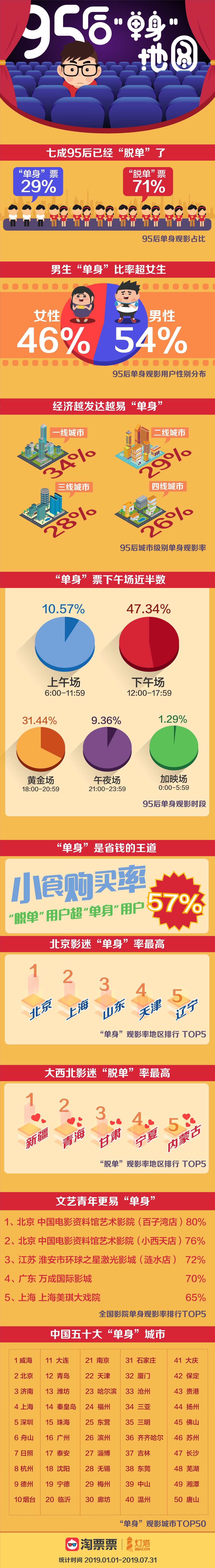見(jiàn)圳客戶端·深圳新聞網(wǎng)2019年8月7日訊(見(jiàn)圳客戶端、深圳新聞網(wǎng)記者 陳婕)七成95后已經(jīng)“脫單”了、經(jīng)濟(jì)越發(fā)達(dá)地區(qū)“單身”率越高,北京、上海、山東成最“單身”地區(qū)……七夕來(lái)臨之際,用戶觀影決策平臺(tái)淘票票和燈塔專業(yè)版聯(lián)合發(fā)布了針對(duì)觀影人群的《95后“單身”地圖》,以“單身”觀影的維度,去側(cè)面觀察時(shí)下年輕人的情感狀態(tài)。