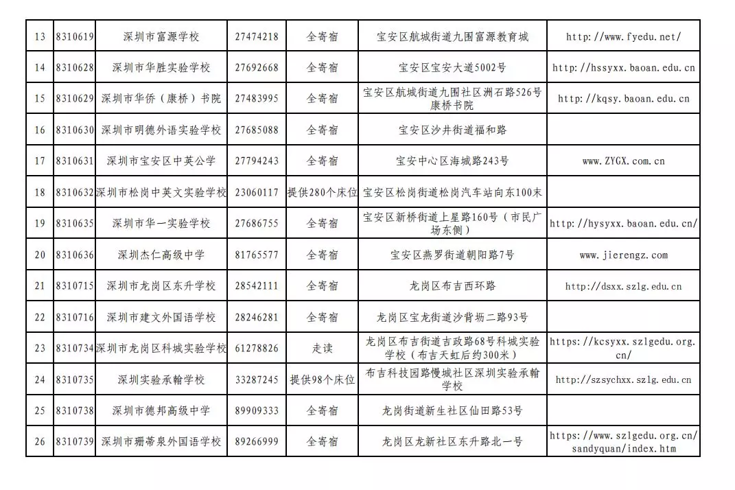 (二)考生可直接到招生學(xué)校報(bào)名。招生學(xué)校地址、聯(lián)系電話等信息,可通過附表或市招考辦印發(fā)的《深圳市2019年高中階段學(xué)校招生簡(jiǎn)介》查詢。
