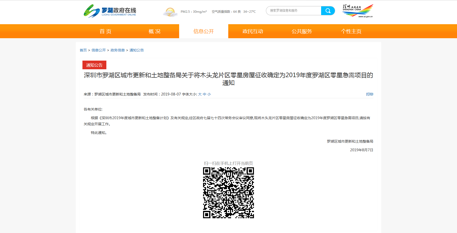 “經(jīng)過全面分析,木頭龍項目涉及眾多公共利益、現(xiàn)狀存在重大社會風(fēng)險的情況下,根據(jù)《深圳市2019年度城市更新和土地整備計劃》房屋征收專項計劃中明確的‘考慮到各區(qū)公共利益項目的急需,各區(qū)區(qū)級房屋征收計劃可安排零星急需項目1項’,羅湖區(qū)政府將木頭龍片區(qū)零星房屋征收確定為2019年度羅湖區(qū)零星急需項目,并啟動征收程序,盡快破解重大歷史遺留難題,防范和化解重大風(fēng)險,落實項目配套的交通設(shè)施、保障性住房等急需公共利益?!彼f,政府將依法依規(guī)實施房屋征收并進行征收補償,保障被征收人的合法權(quán)益。