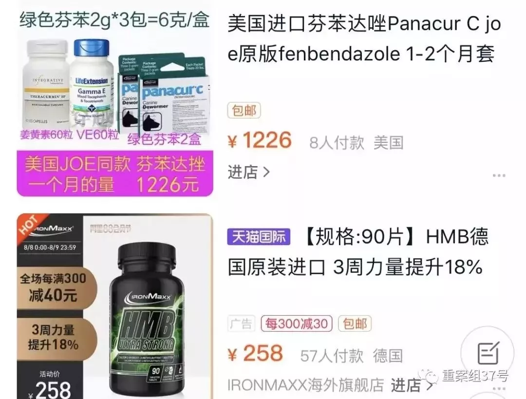 事情發(fā)展到現(xiàn)在,已經(jīng)有人在網(wǎng)上做起這門生意。在電商平臺(tái)搜索可見,不少商家打出“喬伊套餐”等招牌售賣芬苯達(dá)唑,自稱是按美國患者喬的配方搭配,但如此一來,原本20多元一瓶的藥,搭配后就要賣800元左右。