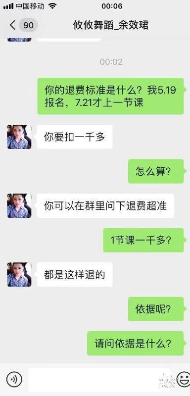 7月31日,學(xué)員們?cè)俅温?lián)系上余效珺,余效珺又答應(yīng)第二天退款?!敖Y(jié)果第二天學(xué)員在舞蹈室等到晚上,老板也沒(méi)出現(xiàn)?!眲⑴空f(shuō)。8月1日,校區(qū)所屬的綜合治理辦公室主持調(diào)解,與學(xué)員代表商量退費(fèi)問(wèn)題,“期間多次打電話催促老板過(guò)來(lái),老板都沒(méi)有去現(xiàn)場(chǎng)?!?/p>