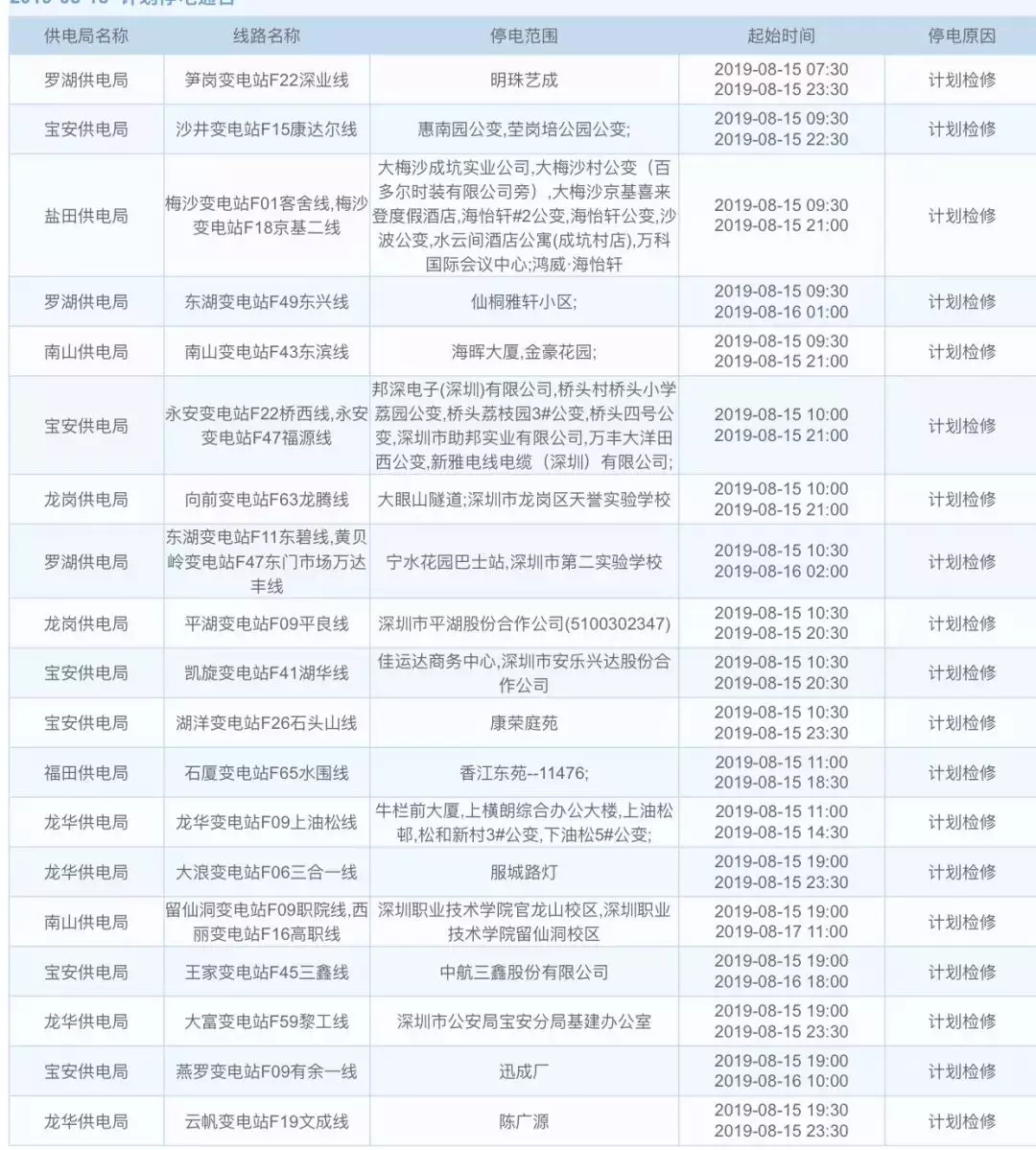 南方電網(wǎng)說,一周內(nèi)下面這些地方計劃停電