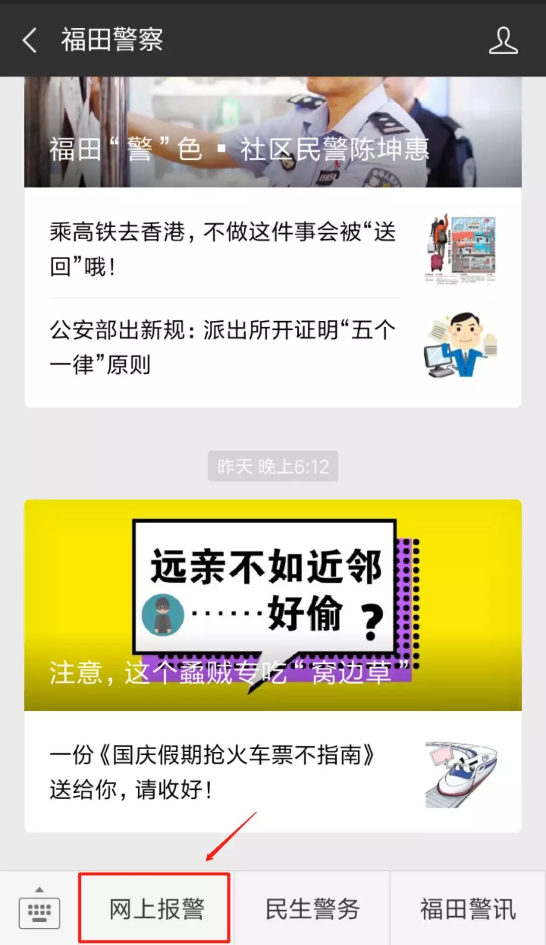 2、點(diǎn)擊“網(wǎng)上報(bào)警”菜單欄