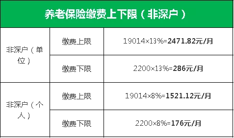 繳費基數(shù):為職工上月工資總額,最高為上年度廣東省全口徑城鎮(zhèn)單位就業(yè)人員月平均工資6338元的3倍,即19014元,最低為深圳市最低月工資標準2200元。