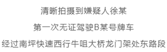深圳交警立即展開調(diào)查,于2019年8月27日清晰拍攝到嫌疑人徐某第一次無證駕駛B某號(hào)牌車,經(jīng)過南坪快速西行牛咀大橋龍門架處東路段。