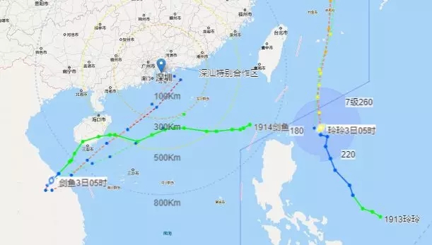 見(jiàn)圳客戶(hù)端.深圳新聞網(wǎng)2019年9月3日訊 9月2日,今年第13號(hào)臺(tái)風(fēng)“玲玲”(強(qiáng)熱帶風(fēng)暴級(jí))生成,將向臺(tái)灣以東洋面靠近。今日2時(shí),記者從深圳市氣象臺(tái)獲悉,另一個(gè)南海低壓也已加強(qiáng)為今年第14號(hào)臺(tái)風(fēng)“劍魚(yú)”(熱帶風(fēng)暴級(jí)),5時(shí)其中心位于深圳市西南方大約1000公里,中心附近最大風(fēng)力8級(jí)(64公里/小時(shí)),中心最低氣壓995百帕。今明兩天其將在越南中部沿海一帶徘徊打轉(zhuǎn),之后可能轉(zhuǎn)向東北方向移動(dòng)并靠近廣東沿海。