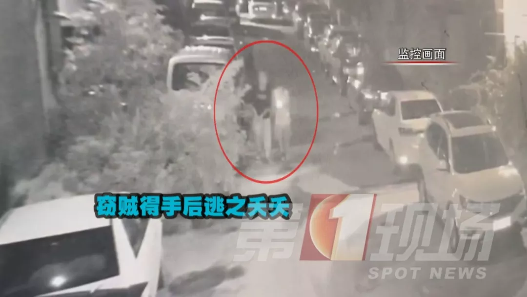 從小區(qū)的監(jiān)控視頻可以看到,就在陳先生上樓沒多久,兩名鬼鬼祟祟的男子打著手電筒,在他的車內倒騰了一番,最后跑到路邊,打了輛出租車揚長而去。