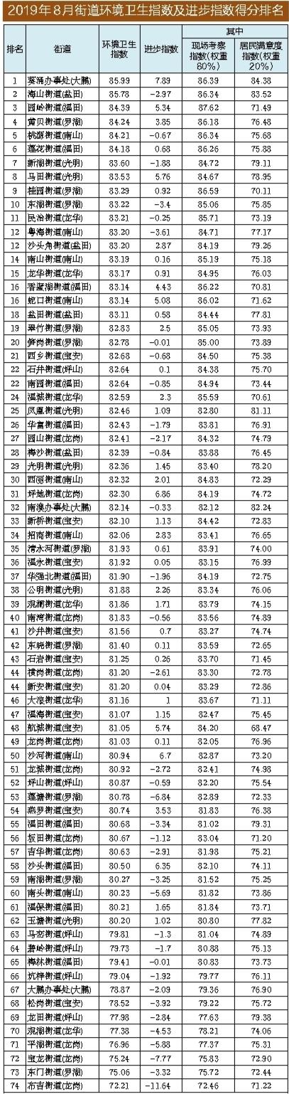 原標(biāo)題:8月份深圳市環(huán)境衛(wèi)生指數(shù)測(cè)評(píng)成績發(fā)布