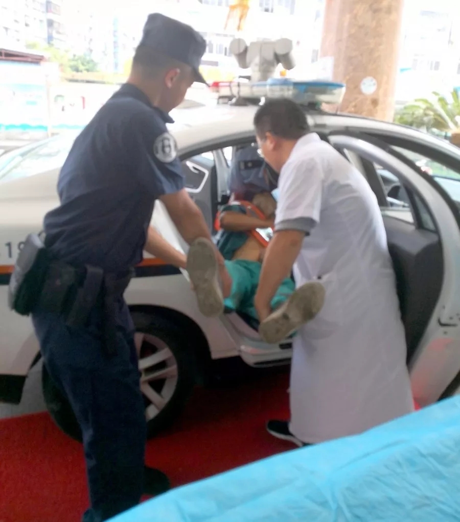 羅明星和交警隊(duì)員還有一名熱心群眾一起把這名環(huán)衛(wèi)工人抬上了警車。憑借著對(duì)轄區(qū)的了解,羅明星很快將他送到了最近的仁愛醫(yī)院。