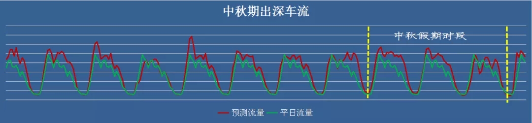 假期第一天上午8時(shí)車流開始增大,11時(shí)左右各高速離深車流量將會達(dá)到頂峰,到下午16時(shí)一直處于高位運(yùn)行狀態(tài),較平日增加30%左右。尤其是博深高速和深汕高速,車流量預(yù)計(jì)較平日將增加80%至100%。