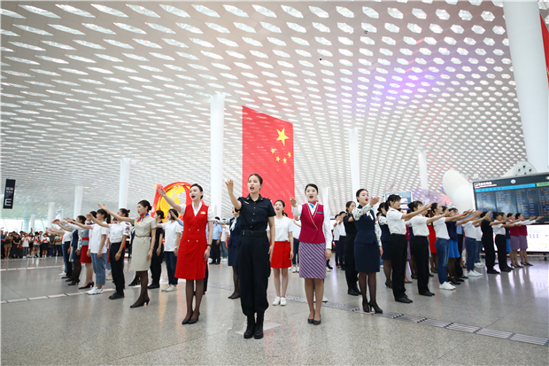 機(jī)場(chǎng)航站樓成“紅色海洋” 他們以這種方式慶祝新中國成立70周年