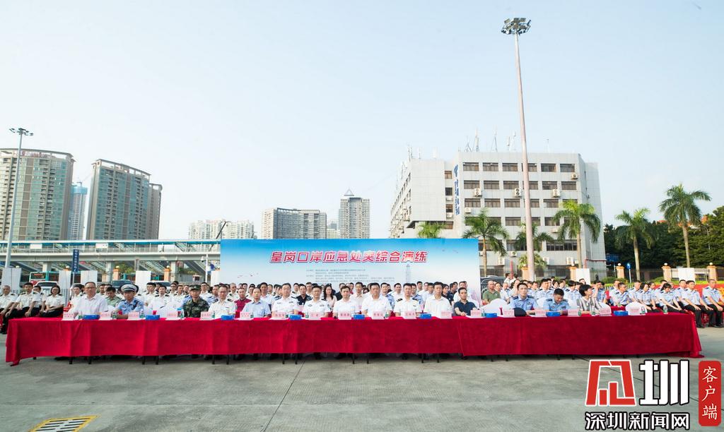 福田區(qū)委副書記黃曉鵬,福田區(qū)委常委、人民武裝部部長李惟海,福田區(qū)人民政府副區(qū)長、市公安局福田分局局長、黨委書記江峰,深圳海關(guān)黨組成員、皇崗海關(guān)關(guān)長王味冰,深圳邊檢總站黨委委員、副總站長、皇崗邊檢站站長陳宏軍,深圳市反恐辦、深圳市口岸辦、以及各參演單位領(lǐng)導(dǎo)現(xiàn)場檢閱觀摩了本場演練。