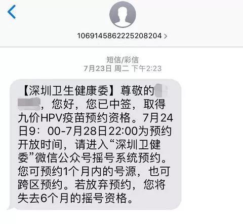 9月24日上午10:00搖號結(jié)束后,當(dāng)天下午,申請者就可以在“深圳衛(wèi)健委”的搖號頁面查看自己是否中簽。同時,中簽者還會收到深圳衛(wèi)健委的短信提示類似這樣——