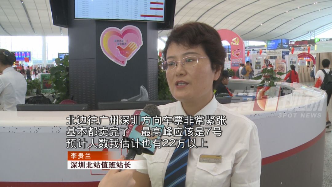 深圳北站值班站長表示,北站已進(jìn)入客流返程高峰,到達(dá)旅客今天將達(dá)24萬人次,10月7日大部分來往廣深兩地的車票都已售罄,預(yù)計(jì)客流返程最高峰將出現(xiàn)在10月7號。