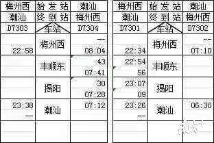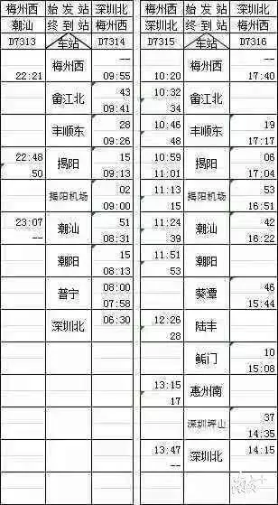 梅州西、畬江北、建橋、豐順東、揭陽、揭陽機(jī)場(chǎng)、潮汕站以及運(yùn)行區(qū)段僅在上述車站范圍內(nèi)的動(dòng)車組列車。