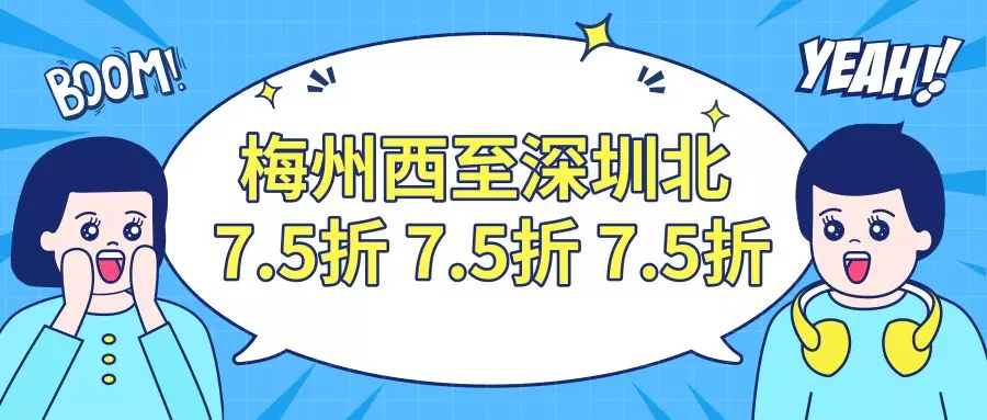 梅州西至廣州南 | 7.5折 | 235.5元 |
