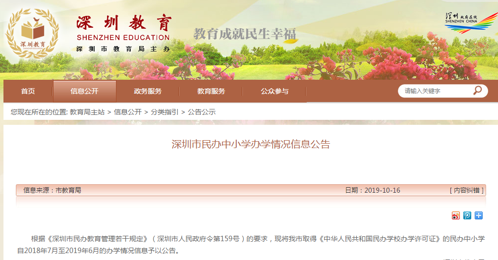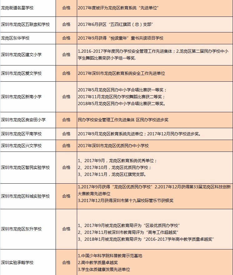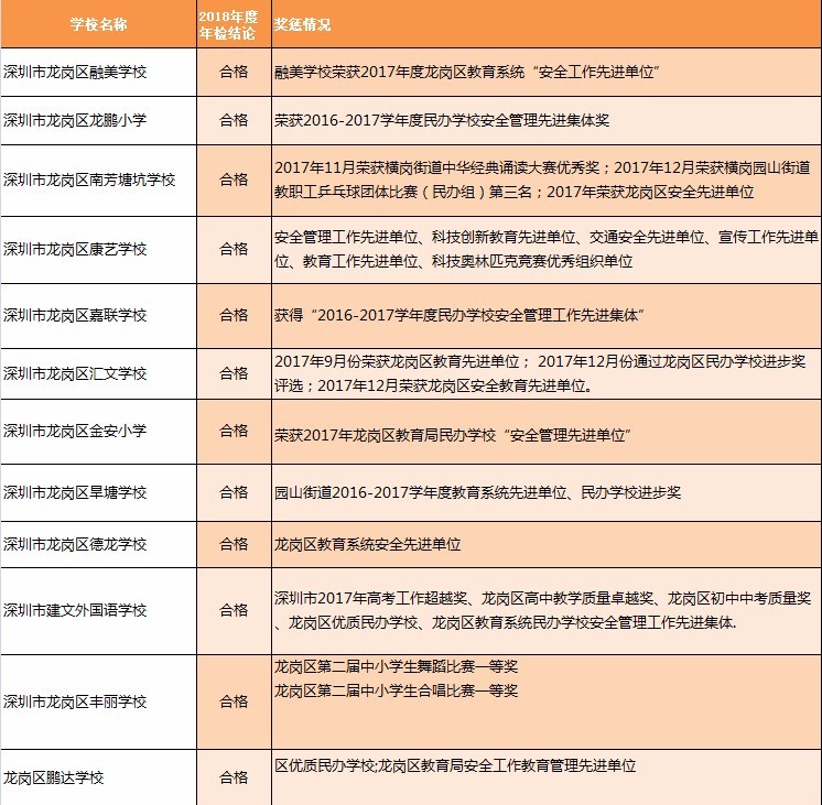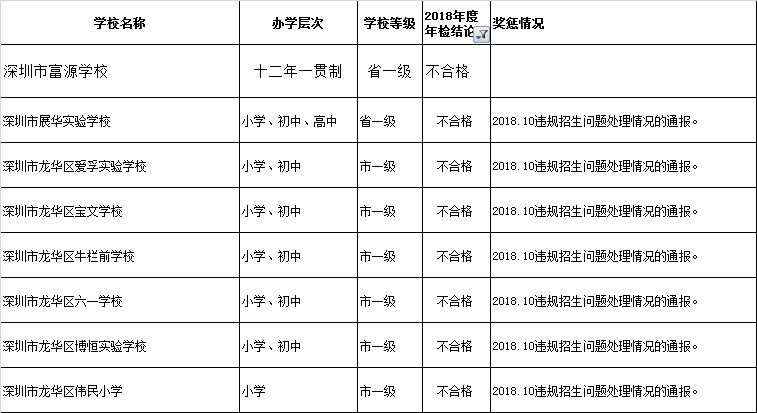 近日,深圳教育局在其官網發(fā)布深圳市民辦中小學辦學情況信息公告。最新公告顯示:2018年度年檢結論為“不合格”的學校共有8所,“基本合格”的有12所,其他均為“合格”或“不滿一年未年檢”。其中,不合格的8所學校分別為:深圳市富源學校、深圳市展華實驗學校、深圳市龍華區(qū)愛孚實驗學校、深圳市龍華區(qū)寶文學校、深圳市龍華區(qū)牛欄前學校、深圳市龍華區(qū)六一學校、深圳市龍華區(qū)博恒實驗學校和深圳市龍華區(qū)偉民小學。主要涉及違規(guī)招生問題。