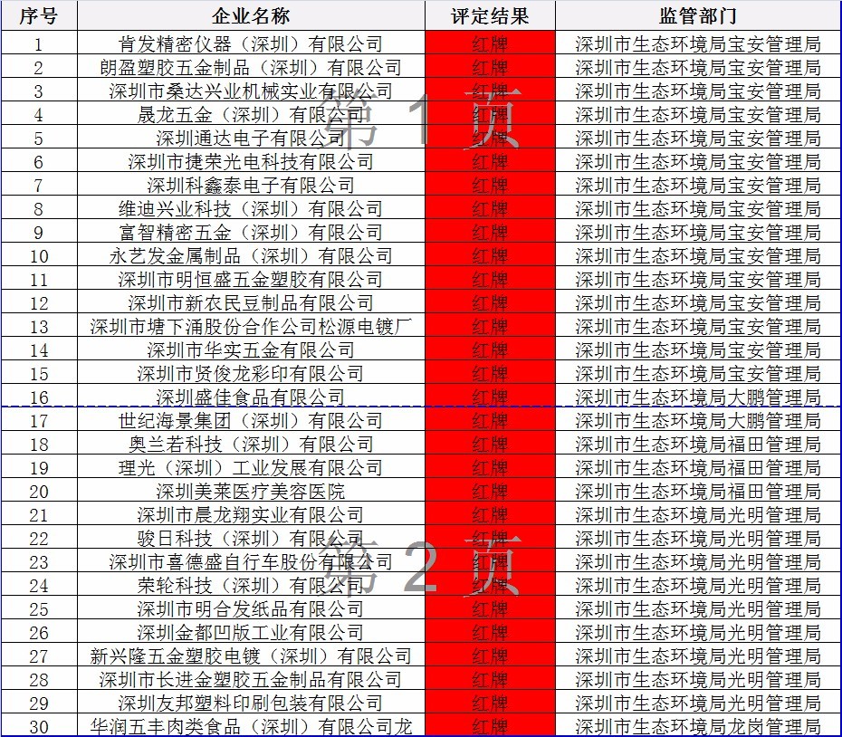 吃紅牌!深圳公布30家環(huán)保不良企業(yè) 你公司上榜了嗎?