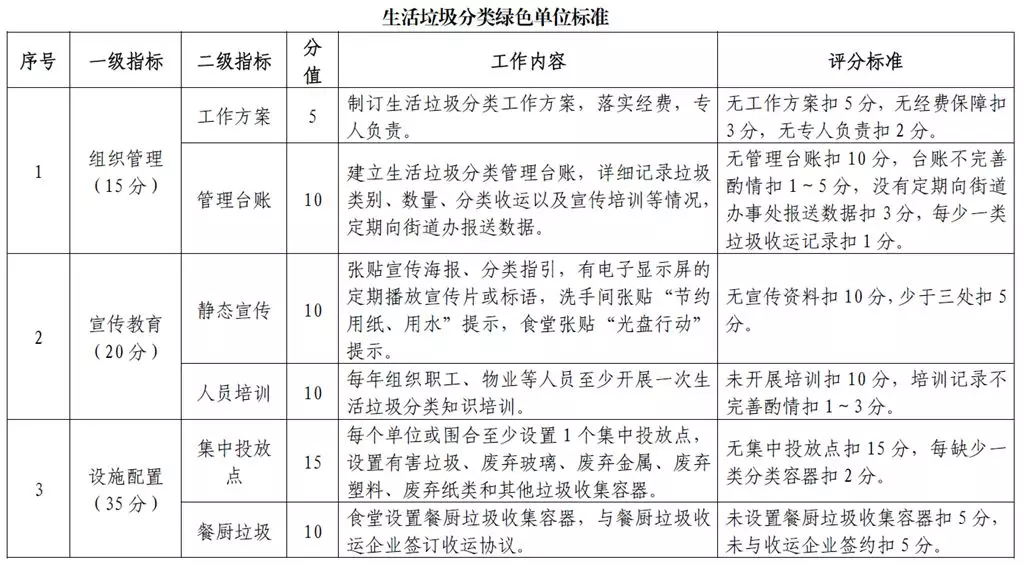 針對(duì)單位激勵(lì)對(duì)象不同,《辦法》還詳細(xì)制定了《生活垃圾分類(lèi)綠色單位標(biāo)準(zhǔn)》《生活垃圾分類(lèi)綠色學(xué)校標(biāo)準(zhǔn)》《生活垃圾分類(lèi)綠色小區(qū)標(biāo)準(zhǔn)》等要求;針對(duì)個(gè)人激勵(lì)對(duì)象,也明確提出了垃圾分類(lèi)督導(dǎo)員、志愿者、教師和其他從業(yè)人員等不同要求。