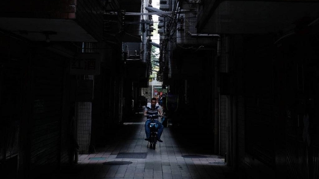 2019年10月17日,蔡屋圍,一位騎車男子。