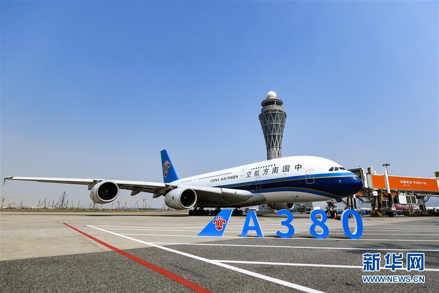 10月27日,南方航空空中客車A380客機(jī)停靠在深圳機(jī)場(chǎng)。當(dāng)日下午,由全球最大寬體客機(jī)——空中客車A380執(zhí)飛的南航CZ3153次航班由深圳起飛前往北京,標(biāo)志著這款“空中巨無霸”機(jī)型重返深圳機(jī)場(chǎng)。南航曾在2014年5月開始啟用A380執(zhí)飛京深航線,后因動(dòng)態(tài)運(yùn)力調(diào)配停飛。新華社記者毛思倩攝