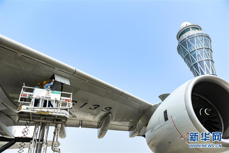 10月27日,工作人員在深圳機場為南方航空空中客車A380客機加油。當(dāng)日下午,由全球最大寬體客機——空中客車A380執(zhí)飛的南航CZ3153次航班由深圳起飛前往北京,標(biāo)志著這款“空中巨無霸”機型重返深圳機場。南航曾在2014年5月開始啟用A380執(zhí)飛京深航線,后因動態(tài)運力調(diào)配停飛。新華社記者毛思倩攝