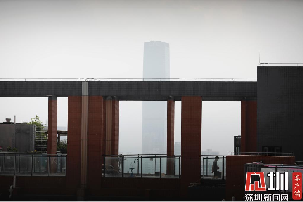 早上9點到10點,福田區(qū)上空呈現(xiàn)灰色。