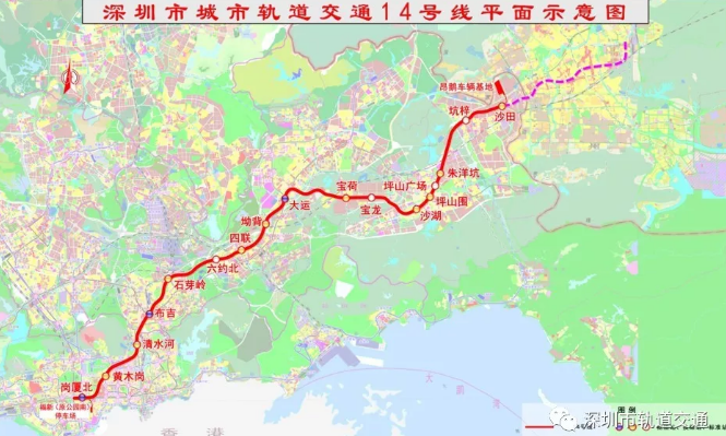 地鐵14號(hào)線全長約50.34km,共設(shè)站17座、停車場1座、車輛段1座、主變電所4座,采用自動(dòng)化無人駕駛,最高設(shè)計(jì)速度為120km/h,預(yù)計(jì)2022年竣工。它連接起福田中心區(qū)、布吉、橫崗、大運(yùn)新城、坪山中心、坑梓,支撐整個(gè)東部發(fā)展軸,覆蓋東部地區(qū)南北向交通需求走廊。