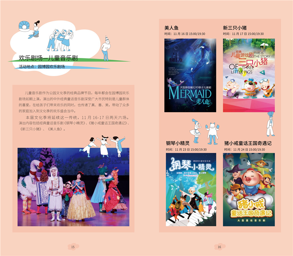 兒童音樂劇是公園文化季的經典品牌節(jié)目。11月16日、17日每天3場兒童音樂劇在園博園歡樂劇場舉行,表演中外經典童話音樂劇。
