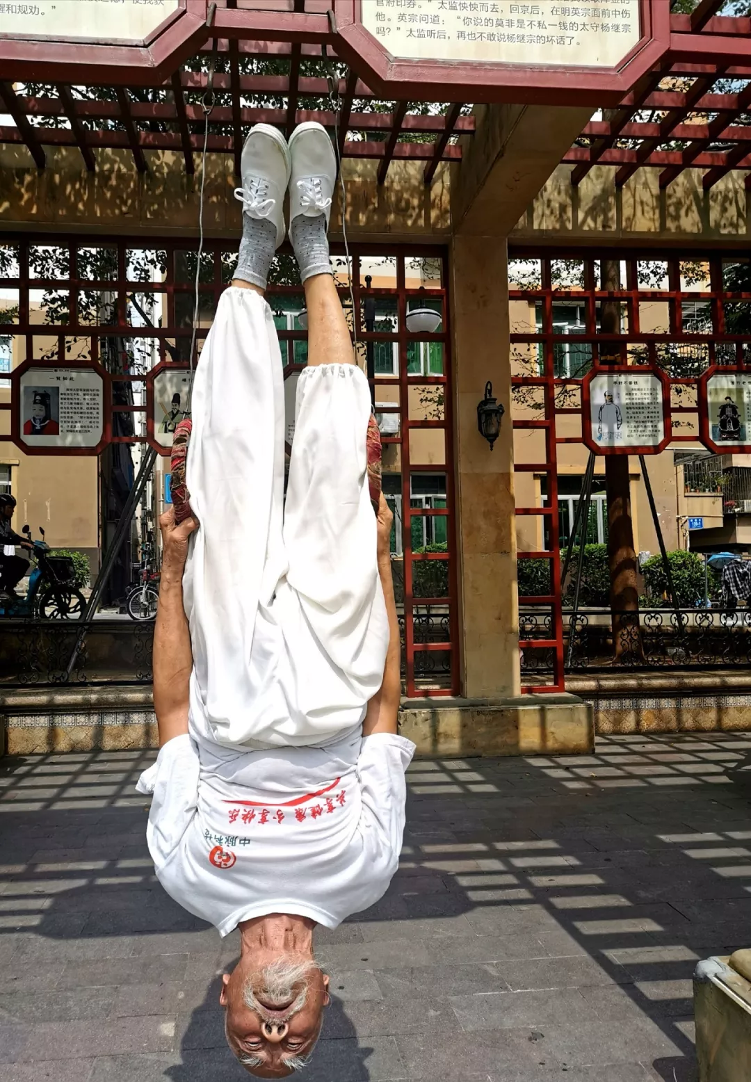 在鍛煉這件事上,他很認(rèn)真,堅(jiān)持不懈,60多年如一日,風(fēng)雨無(wú)阻,從未偷懶過(guò)。漸漸地,魏宗信發(fā)現(xiàn)倒立的好處極多,還變成了自己的一項(xiàng)“絕技”。后來(lái)他開(kāi)始教妻子和兒女一起練習(xí)倒立。另外,他在吃飯這件事上也挺“認(rèn)真”,每周一三五做魚(yú),二四六燒肉,葷素搭配,有滋有味。