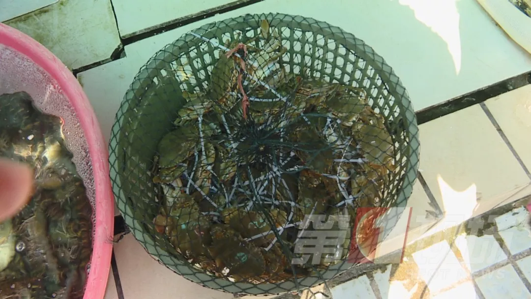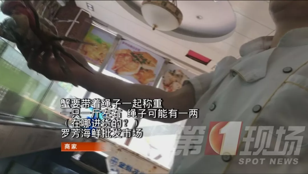 5日早上,記者走訪了羅芳水產(chǎn)批發(fā)市場附近的酒樓,發(fā)現(xiàn)酒樓售賣的膏蟹也是從羅芳市場進(jìn)的貨,不過這里的膏蟹綁繩沒那么粗。
