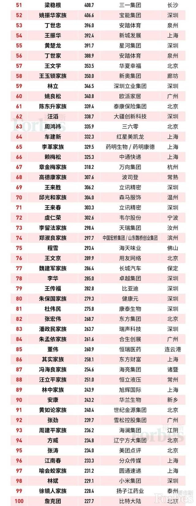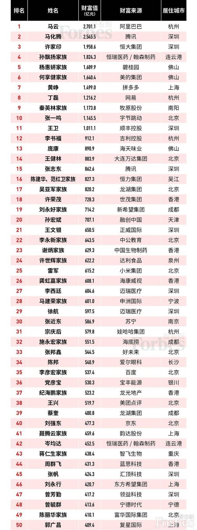 南方網(wǎng)2019年11月7日訊 11月7日,福布斯發(fā)布2019年度中國富豪榜,400位中國富豪登上這份頂級(jí)財(cái)富榜單。