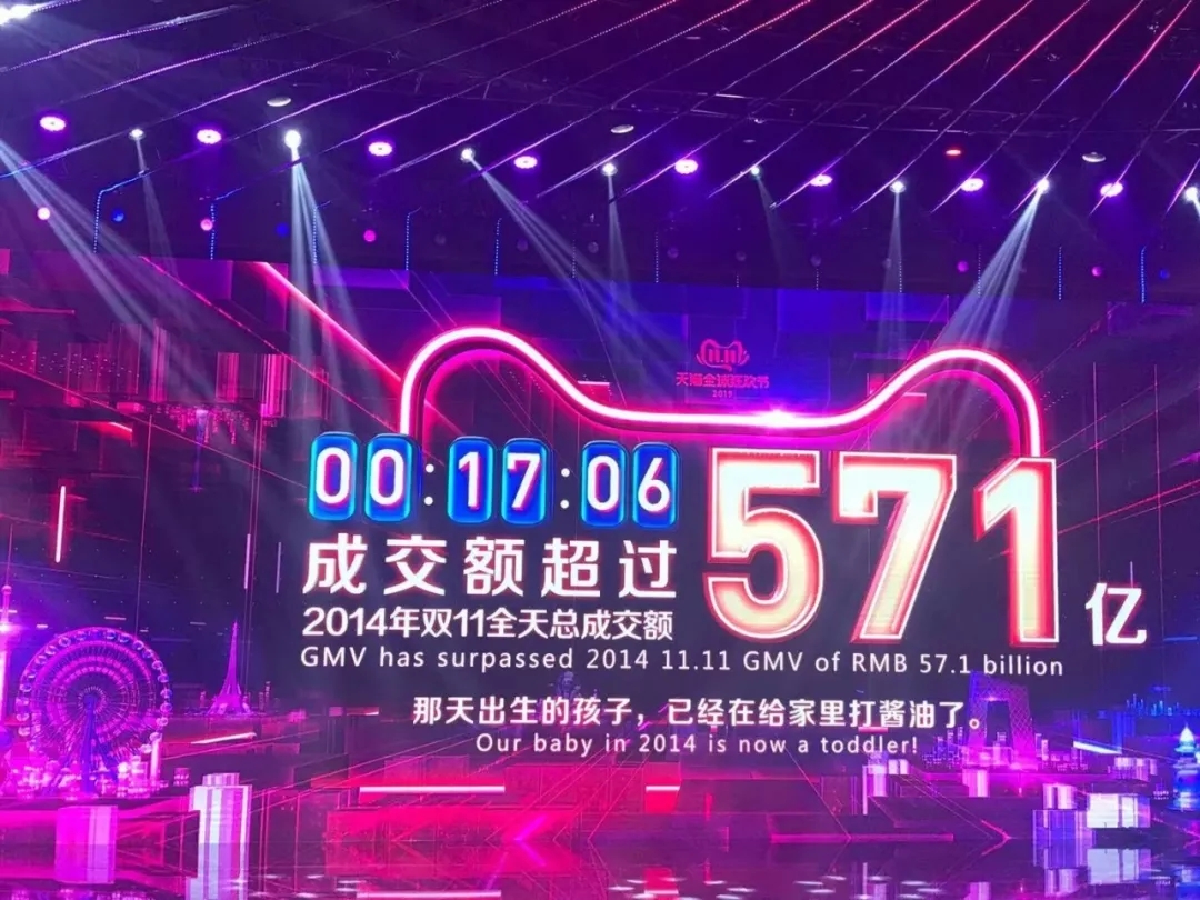 破1000億僅用時(shí)1小時(shí)3分59秒。而去年,這一數(shù)據(jù)為1小時(shí)47分。