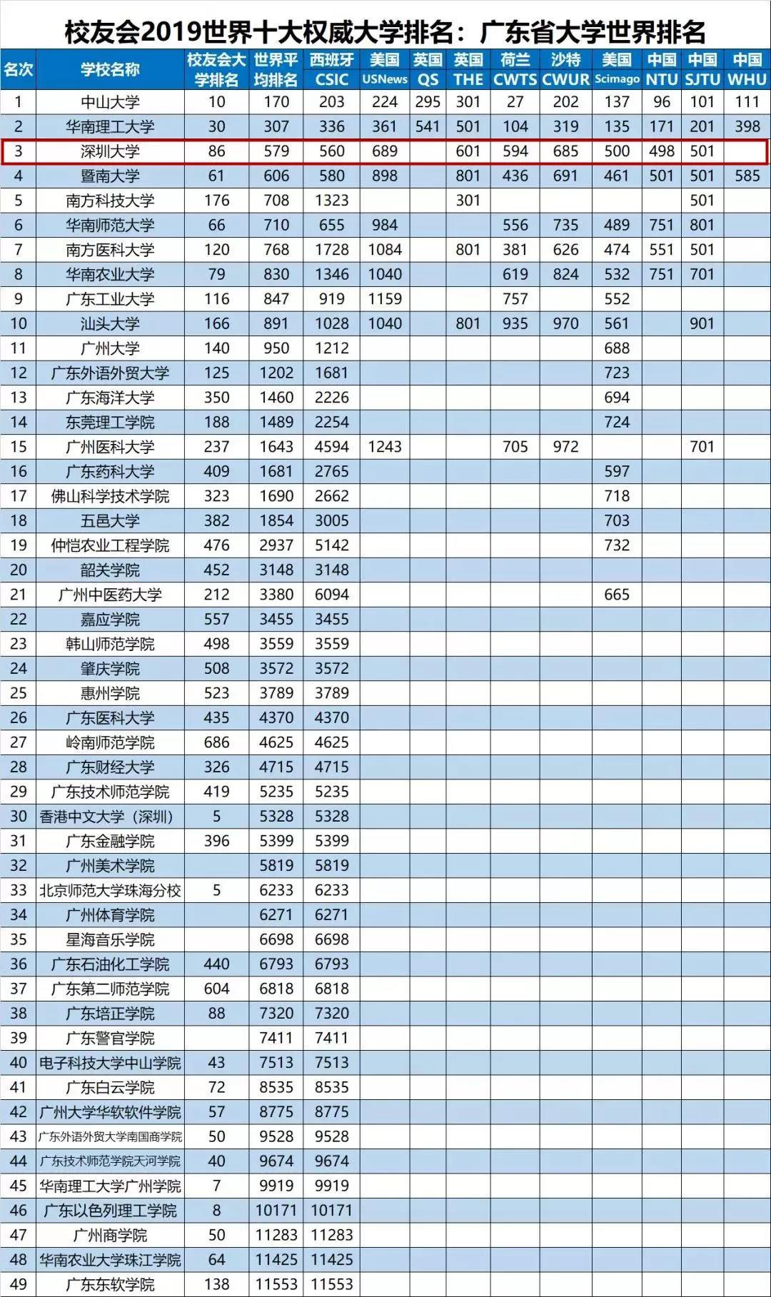 報告顯示,在全球公認(rèn)的英國QS、英國THE、美國USNews、美國Scimago、西班牙CSIC、荷蘭CWTS、沙特CWUR、中國NTU、中國SJTU和中國WHU等2018-2019世界十大權(quán)威大學(xué)排名中,中山大學(xué)、華南理工大學(xué)、深圳大學(xué)名列2019廣東省大學(xué)排名前3強(qiáng)。