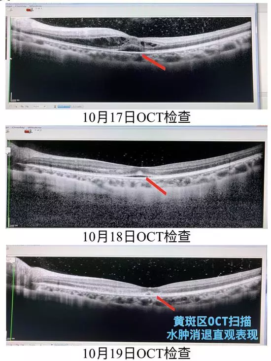 病房立即邀請(qǐng)眼科醫(yī)生會(huì)診,發(fā)現(xiàn)患者出現(xiàn)雙眼脈絡(luò)膜視網(wǎng)膜炎,左眼矯正視力僅剩0.3。經(jīng)過(guò)及時(shí)對(duì)癥治療,三天后,患者左眼視力由發(fā)病初的矯正視力0.3提高到矯正視力0.8,現(xiàn)視力還在進(jìn)一步恢復(fù)中。