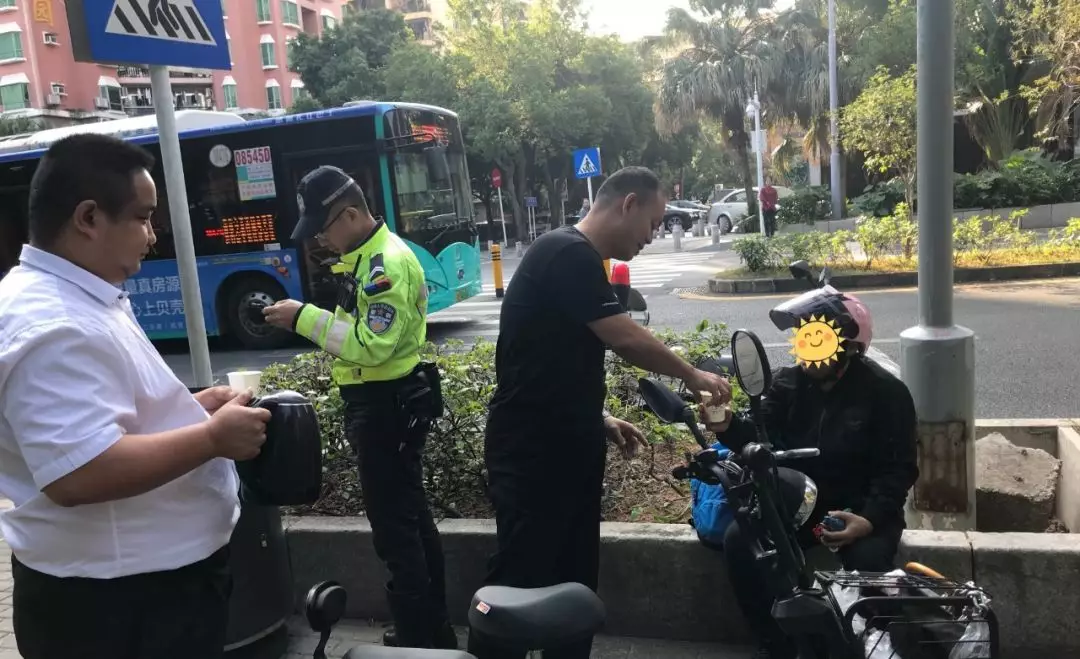 11月19日8時(shí)許,深圳市公安局福田分局福保派出所社區(qū)隊(duì)黃金海副隊(duì)長(zhǎng)在轄區(qū)巡查中發(fā)現(xiàn),有一名騎著自行車(chē)的女子不慎摔倒在地,黃金海副隊(duì)長(zhǎng)立即上前檢查其傷勢(shì)并將其扶到一旁先行休息。由于摔倒女子手捂膝蓋,表情痛苦,黃金海擔(dān)心她可能腿骨有損傷,便幫她撥打了120。等到救護(hù)車(chē)到來(lái)后,黃金海副隊(duì)長(zhǎng)聯(lián)同醫(yī)護(hù)人員一起將受傷女子送上救護(hù)車(chē)后才放心離開(kāi)。