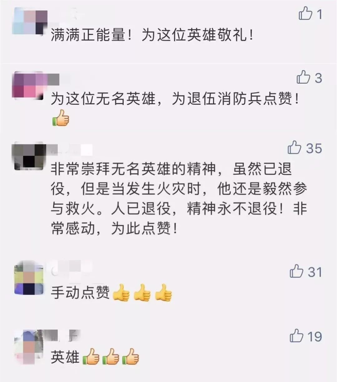 網(wǎng)友紛紛為這位救火的英雄手動點贊: