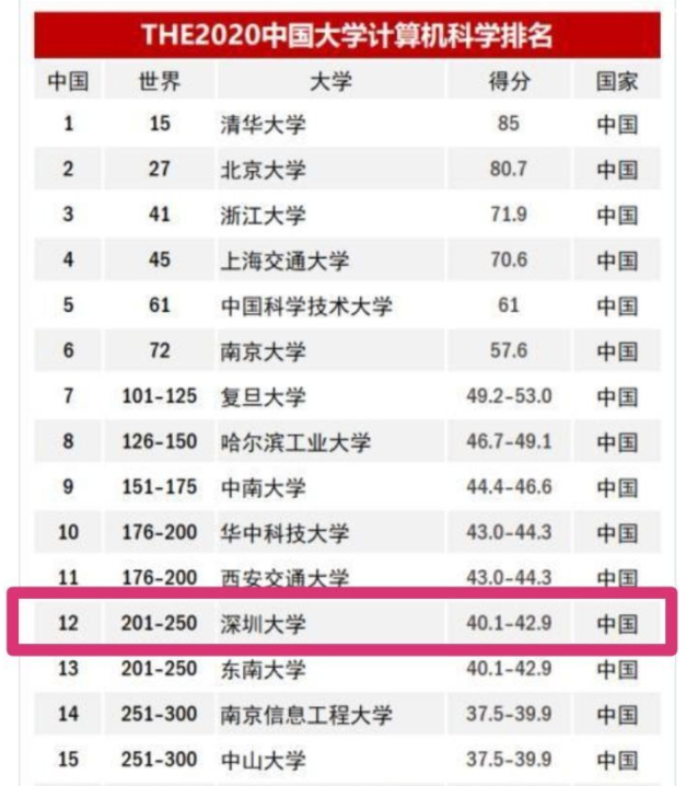 深圳商報2019年11月25日訊 近日,《泰晤士報高等教育》發(fā)布了世界大學(xué)學(xué)科的最新排名,對部分熱門專業(yè)進(jìn)行了排名更新。根據(jù)計(jì)算機(jī)科學(xué)專業(yè)最新排名顯示,深圳大學(xué)計(jì)算機(jī)科學(xué)學(xué)科位列中國內(nèi)地高校第12,較上一年度的泰晤士學(xué)科排名上升1位;世界排名從去年的301-400位進(jìn)階至201-250位之間。