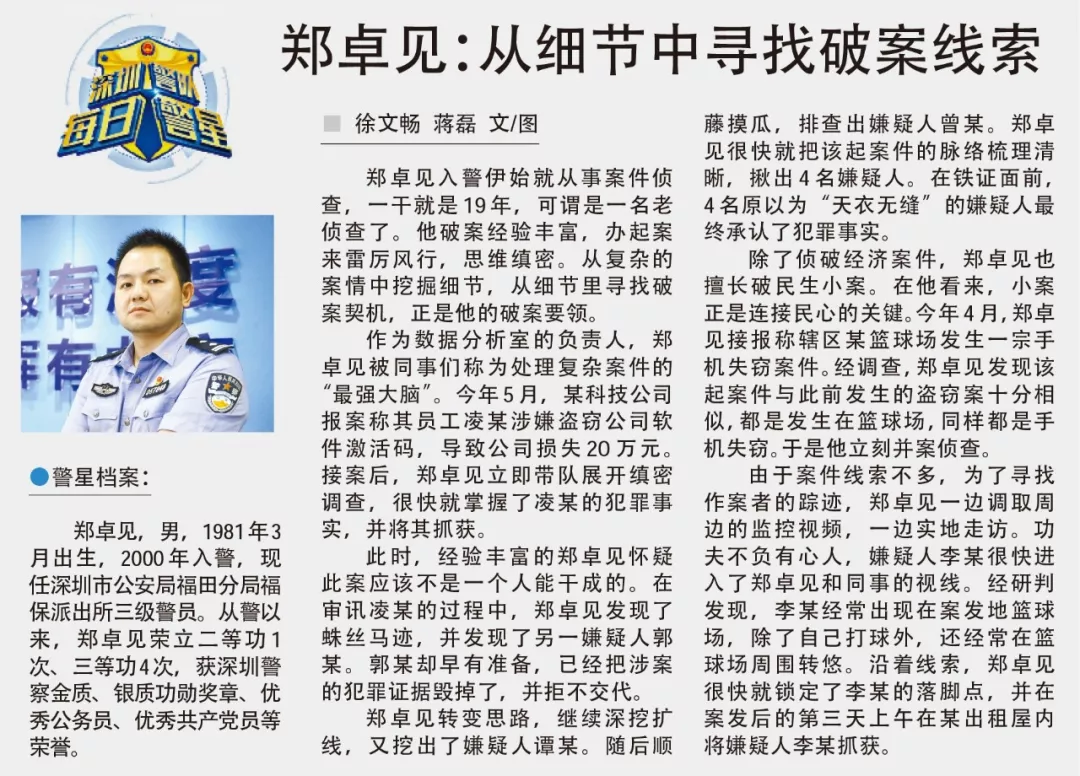 每日警星|鄭卓見(jiàn):從細(xì)節(jié)中尋找破案線(xiàn)索