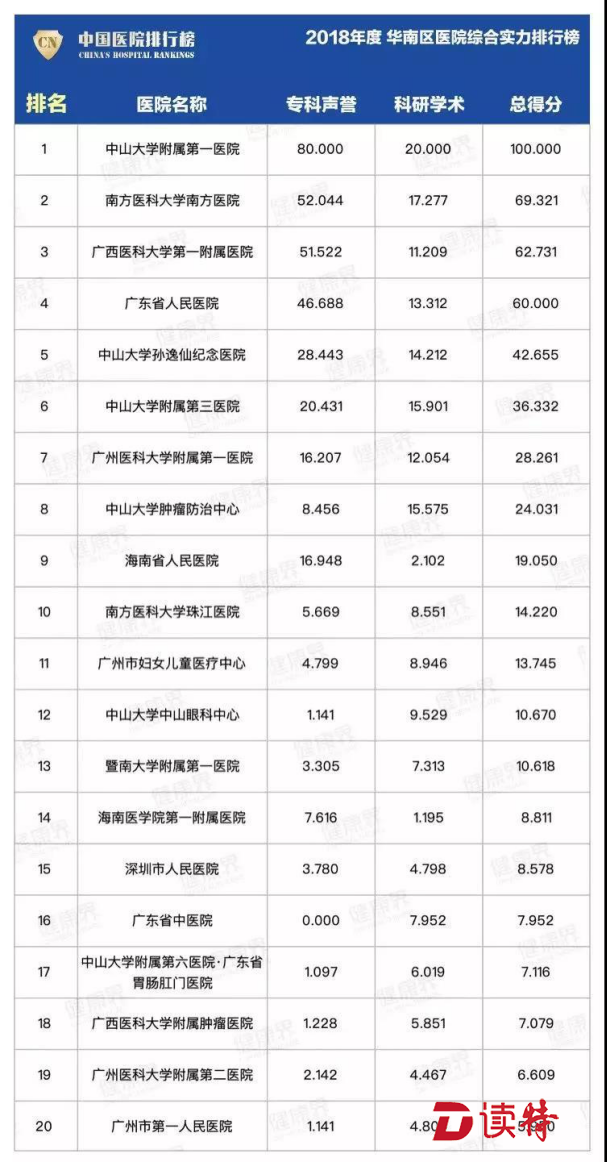 原標(biāo)題:廣東兩醫(yī)院躋身全國(guó)醫(yī)院20強(qiáng),16家醫(yī)院成為華南區(qū)20強(qiáng)醫(yī)院