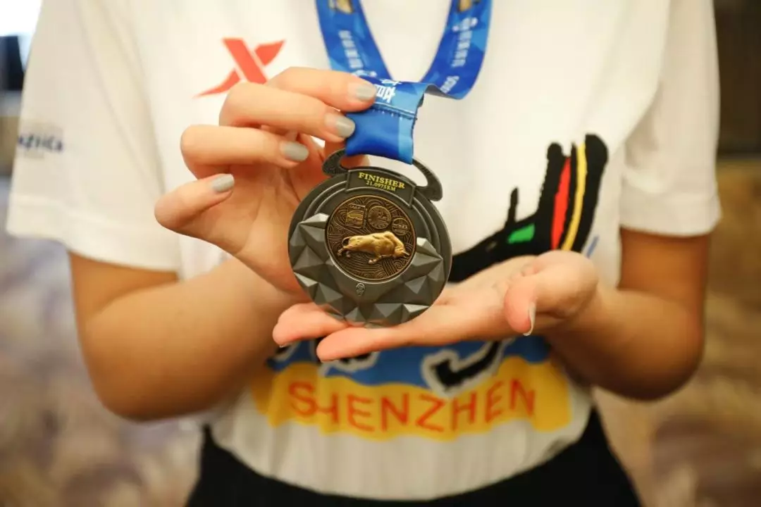 本次,2019深圳國(guó)際馬拉松完賽獎(jiǎng)牌一直以來(lái)是跑者關(guān)注的焦點(diǎn),完賽獎(jiǎng)牌以龍崗大運(yùn)體育中心建筑為主體,正面集中展示平安大廈、地王大廈、市民廣場(chǎng)等深圳市地標(biāo)建筑,背面是由全國(guó)著名的藝術(shù)家潘鶴雕刻而成的拓荒牛雕像。拓荒牛粗獷雄偉,重心向前,堅(jiān)韌不拔,是剛毅和力量的代表,象征深圳開拓進(jìn)取的精神。
