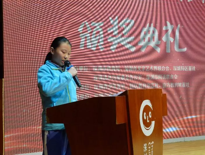 市教育局副局長王水發(fā)代表深圳市教育局向獲獎的同學表示熱烈祝賀。他說,為了培育社會核心價值、傳承民族文化基因、培養(yǎng)文化創(chuàng)意人才,深圳校園文學開辟了一條新的路徑,對深圳建設城市文明典范起到了奠基、培根和固本的重要作用。