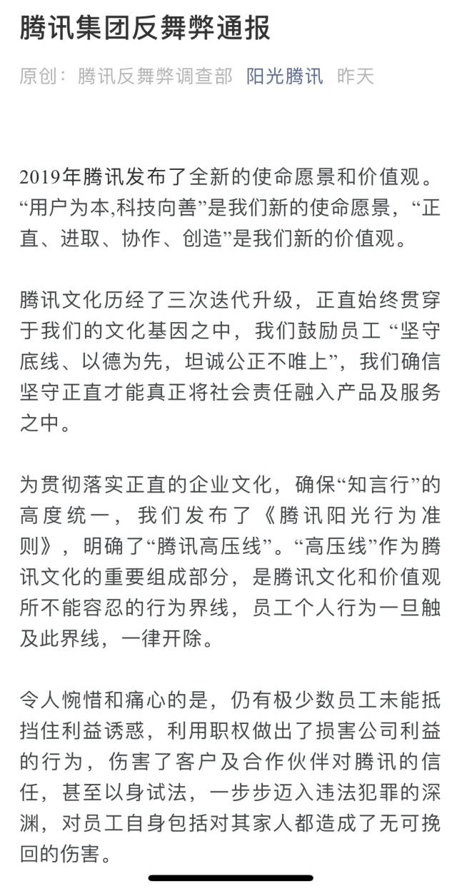 以下為《騰訊集團(tuán)反舞弊通報》中的典型案例: