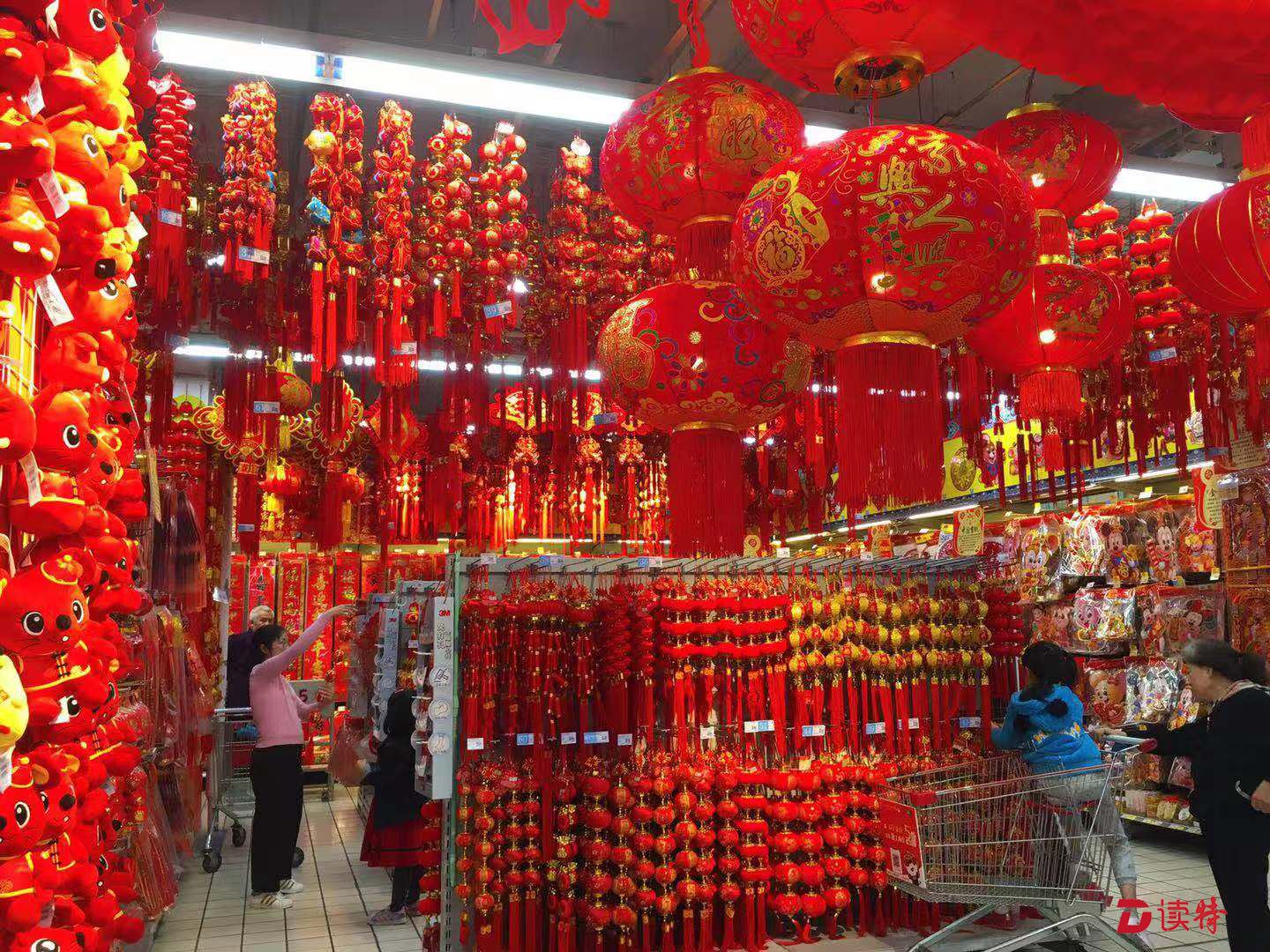 記者在華潤萬家、沃爾瑪、家樂福等商超門店看到,干果飲料、糖果餅干、酒水等各式各樣的年貨禮盒禮包被整齊擺放在顯眼位置,并標(biāo)貼著優(yōu)惠價簽;年貨街以及春聯(lián)、中國結(jié)、紅燈籠等春節(jié)飾品區(qū)等購物場景一一上線,干貨、腌制食品等熱門年貨也加入了促銷陣營;“恭喜發(fā)財”等新春標(biāo)配曲目已在某商超開始播放,讓人可以感受鼠年春節(jié)將至的氛圍。