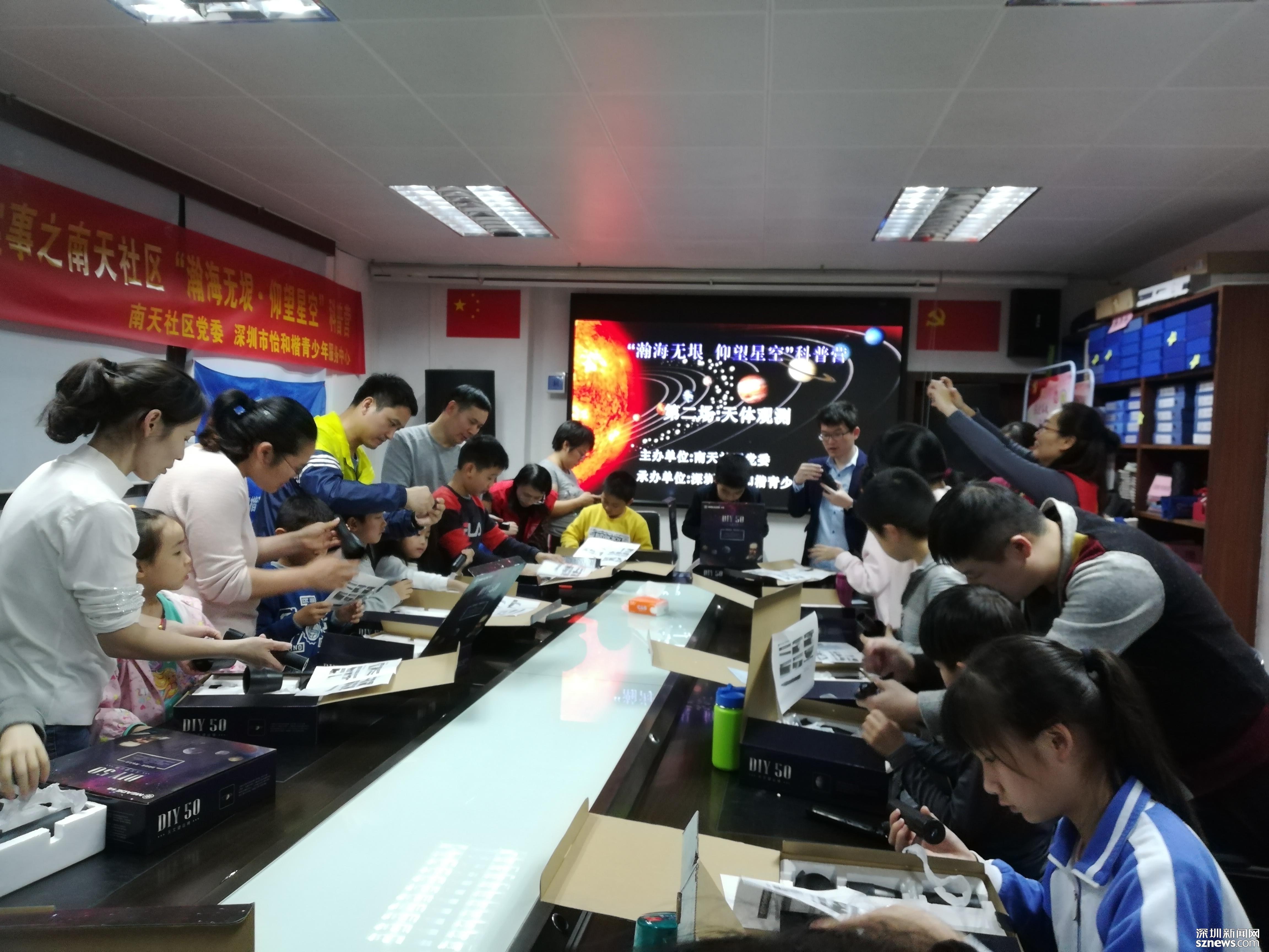 見(jiàn)圳客戶端、深圳新聞網(wǎng)2020年1月7日訊 為全面貫徹落實(shí)《全民科學(xué)素質(zhì)行動(dòng)計(jì)劃綱要》,提高福田區(qū)園嶺街道南天社區(qū)青少年科學(xué)素質(zhì)。南天社區(qū)高度重視社區(qū)青少年居民天文科普知識(shí),為青少年打開宇宙夢(mèng)想之門。由南天社區(qū)黨委主辦,深圳市怡和楷青少年服務(wù)中心承辦的《瀚海無(wú)垠仰望星空科普營(yíng) 》活動(dòng)在南天社區(qū)及社區(qū)天臺(tái)戶外如火如荼展開。