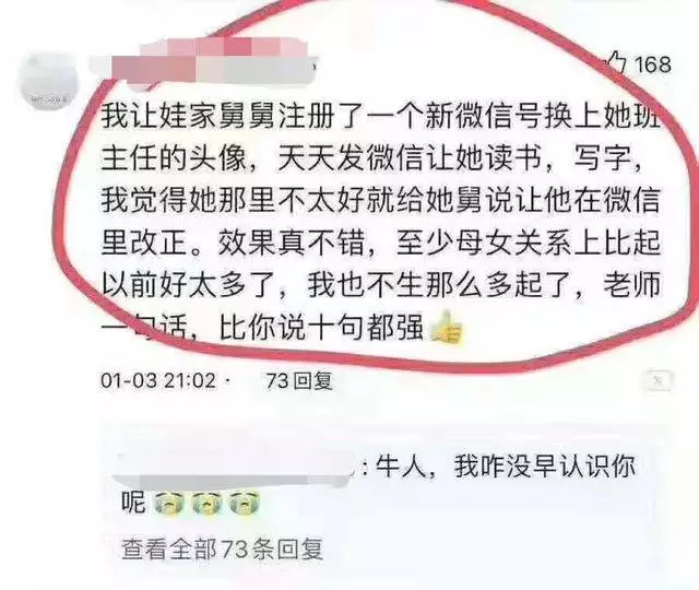 “牛人,我咋沒(méi)早點(diǎn)認(rèn)識(shí)你呢?”“人才啊”……此奇招一出,家長(zhǎng)們紛紛感嘆。也有家長(zhǎng)擔(dān)心:“萬(wàn)一穿幫了,對(duì)孩子傷害很大,家長(zhǎng)信用大打折扣!”