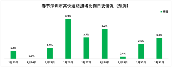 1、深圳市內高快速路出行方面:預計1月23日至1月31日(農歷年二十九至正月初七),市內高快速道路整體路況良好。